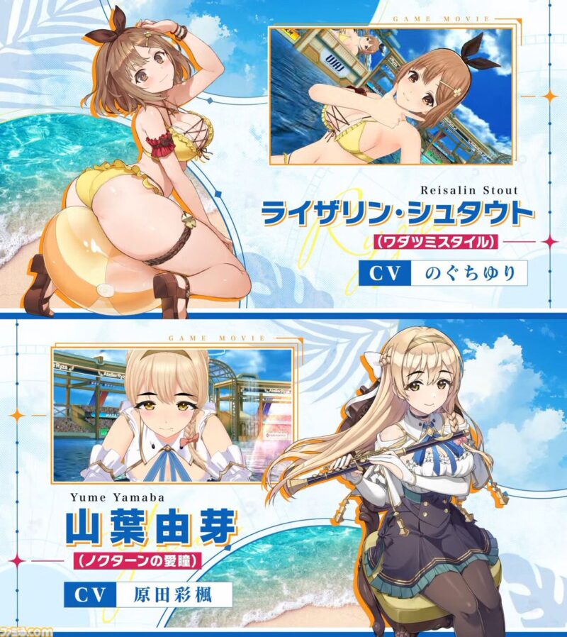 『ライザのアトリエ』×『ドルフィンウェーブ』コラボ決定。水着衣装のライザ、クラウディア衣装の由芽がプレイアブル化コラボは1月19日のメンテナンス後よりスタート。イベントをプレイすることでコラボ衣装やコラボマシンを入手できる