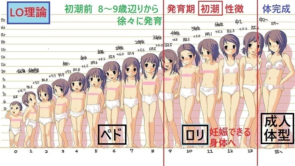 7歳以下の幼児とも違うし、14歳以上のもう体完成してる若い女とも違う これはどちらも大幅に体型が変わらないんや