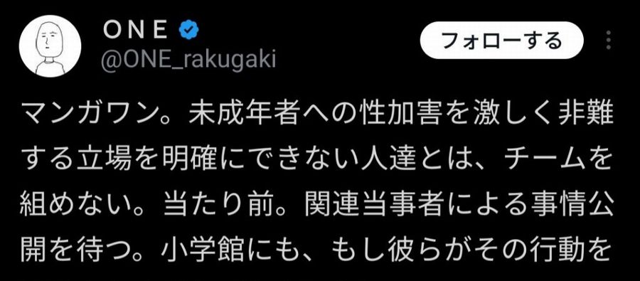 【画像】ワンパンマンやモブサイコ100のONE、マンガワンについてお気持ち表明wwwww