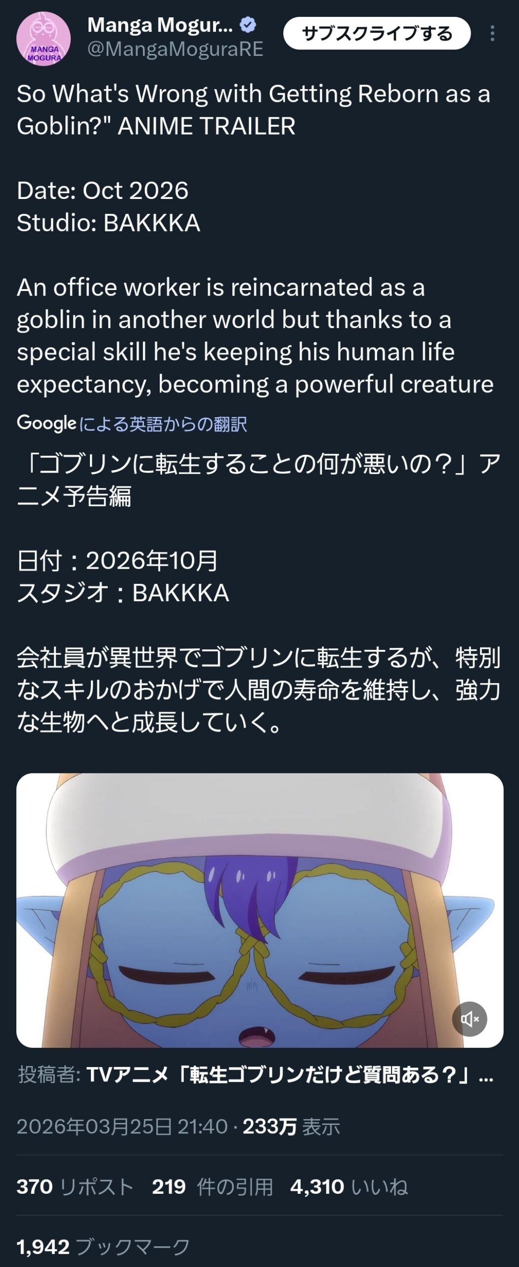 ゴブリンに転生するアニメ前にも見たぞ
