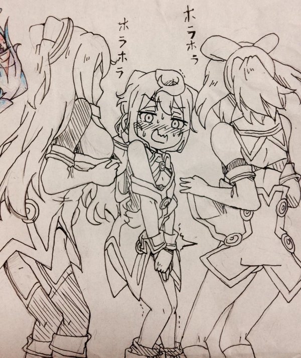 【画像】女の子かお尻こっちに向けておパンツ履いてる状態で指で片方のマ〇コ引っ張ってるイラストwwwww