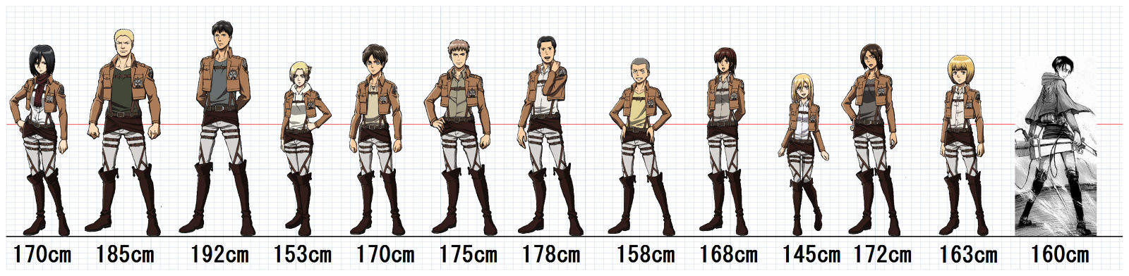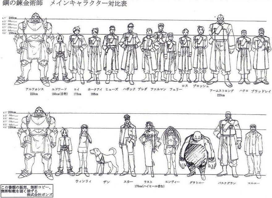 スレッド「アニメの身長対比表を貼ってみよう」より。