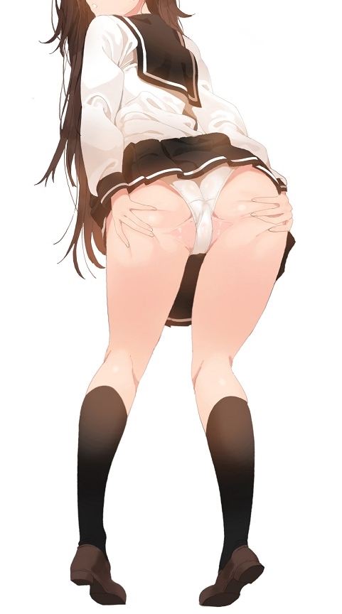 【画像】女の子かお尻こっちに向けておパンツ履いてる状態で指で片方のマ〇コ引っ張ってるイラストwwwww