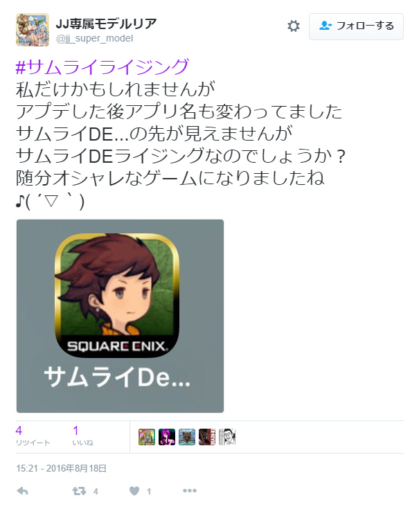 『サムライライジング』のメンテナンス後に、何故かAppStoreのアプリ名が『サムライDe…』となり、