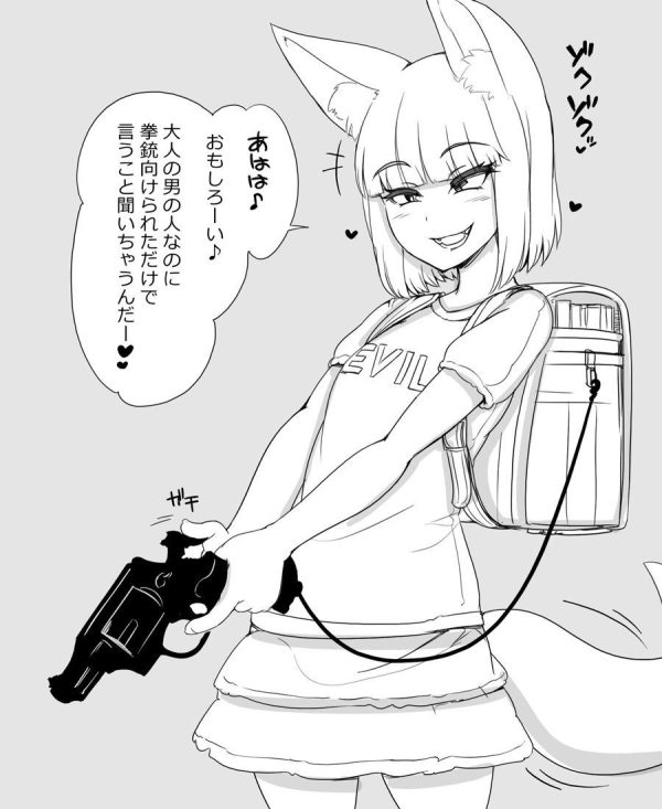 【画像】幼女「おじさんカッコ悪❤︎銃向けられただけで焦ってる」