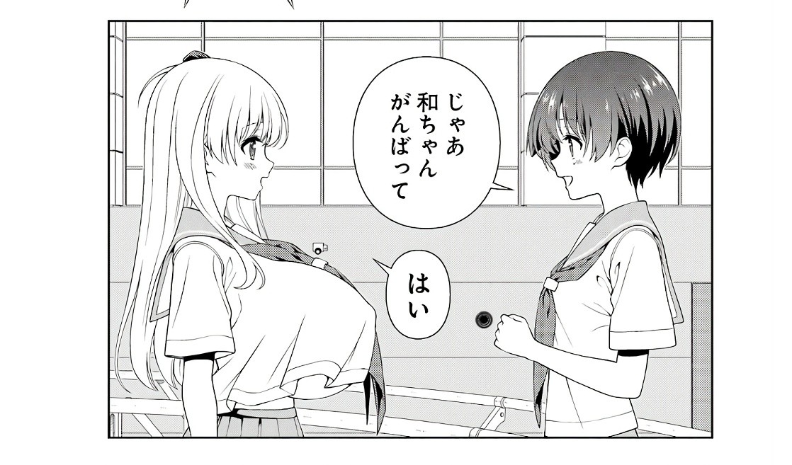 最新話だと終盤戦でエネルギーも残り少なくなってて胸もチョイ巨乳くらいになってるあと特典のイラストは「小学生時代にエネルギーを貯めたら」って妄想イラストだから余計アンバランスに見えてる