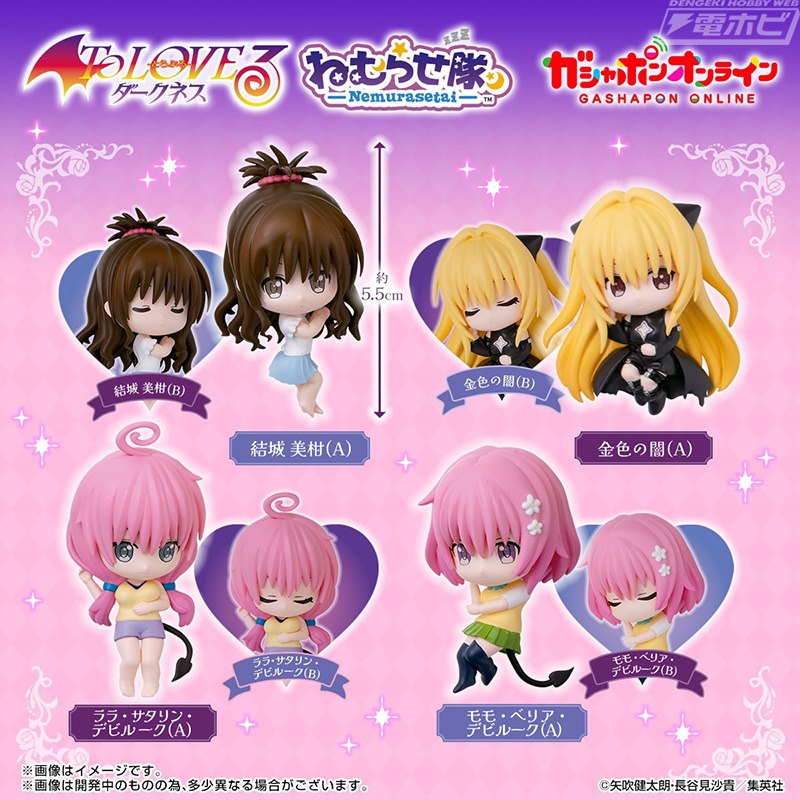 大人気ラブコメ作品『To LOVEる-とらぶる-ダークネス』の「ねむらせ隊」が登場! 眠り姿が可愛い美柑、金色の闇、ララ、モモに注目です。また、表情違いも用意されています。
